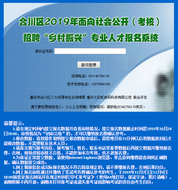 2019重慶合川事業(yè)單位面向社會公開(考核)招聘“鄉(xiāng)村振興”專業(yè)人才60繳費時間:2019年10月27日至10月29日18:00前考試時間:待定,見準(zhǔn)考證。繳費通道已開放,有意向的考生不要錯過此次繳費時間。
