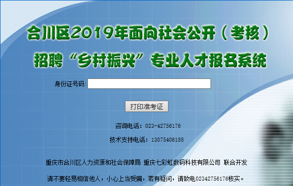 2019重慶合川事業單位面向社會公開(考核)招聘“鄉村振興”專業人才60名。準考證打印時間:2019年11月7日至11月8日18:00,考試時間:待定,見準考證。準考證打印通道已開放,有意向的考生不要錯過此次時間。