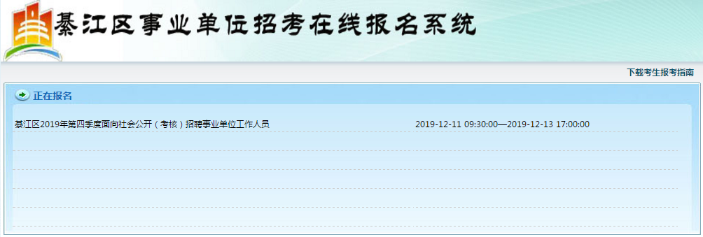 本次考試招聘(崗位序號1-33)采取網上報名方式,不設現場和電話報名,任何單位和個人不得以任何理由拒絕符合條件的人員報名。考生于2019年12月11日9:30—12月13日17:00登錄在綦江區人民政府官方網站“綦江區事業單位招考在線報名系統”入口進入報名系統,提交報考申請??忌荒苓x擇本次招聘單位中的一個招聘崗位報名,按各報考崗位競爭,分別聘用??忌荒苡眯隆⑴f兩個身份證號同時報名,報名與考試時使用的社??ɑ蛏矸葑C必須一致。報名時,請仔細閱讀誠信報考承諾書和“相關說明”,如實準確填寫報考信息的各項內容,并上傳電子照片(jpg格式,20kb以下),準確記住報名序號(報名序號是報名確認、下載打印準考證和成績查詢等事項的重要依據和關鍵字)。