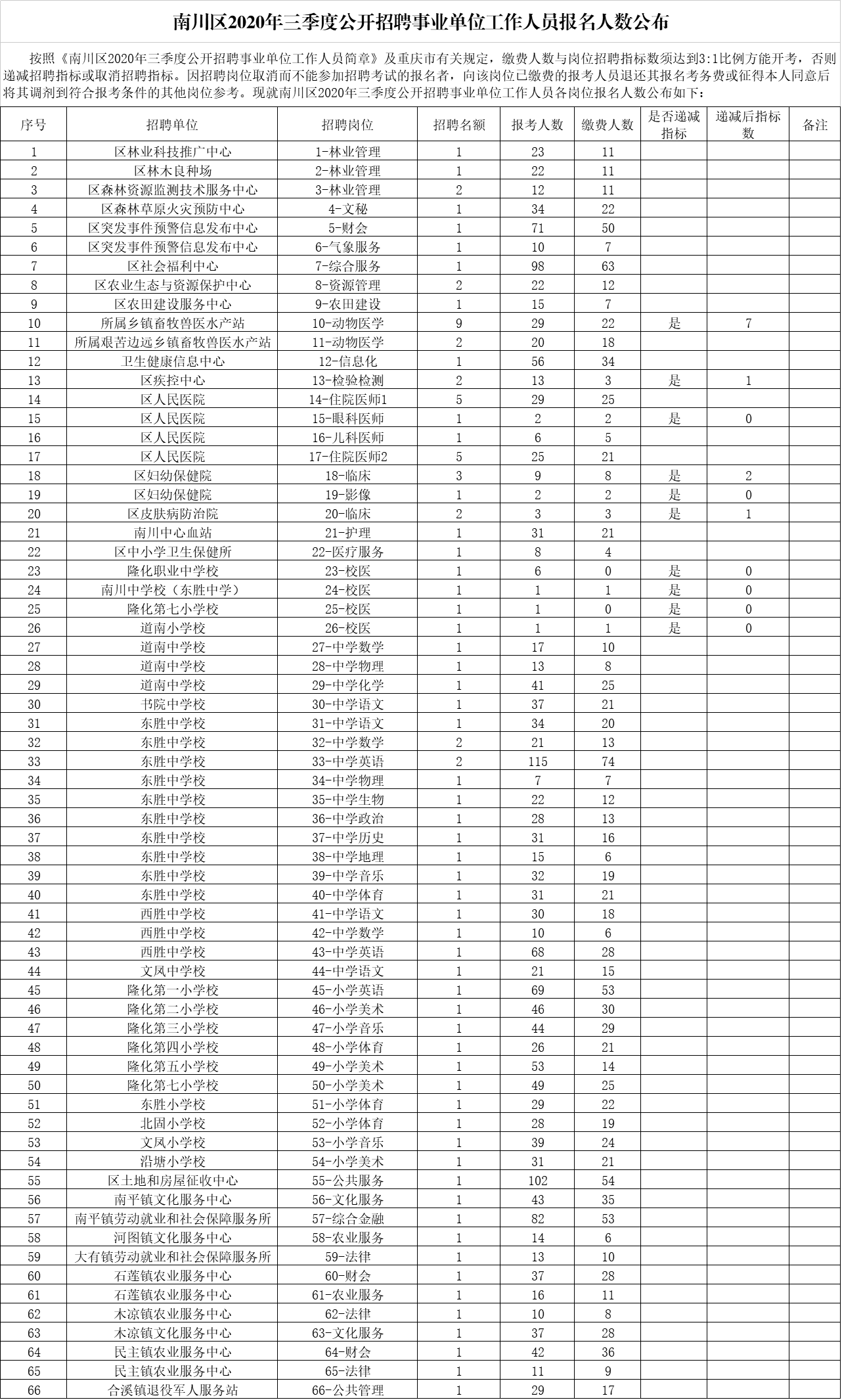 原標題:南川區2020年三季度公開招聘事業單位工作人員報名人數公布