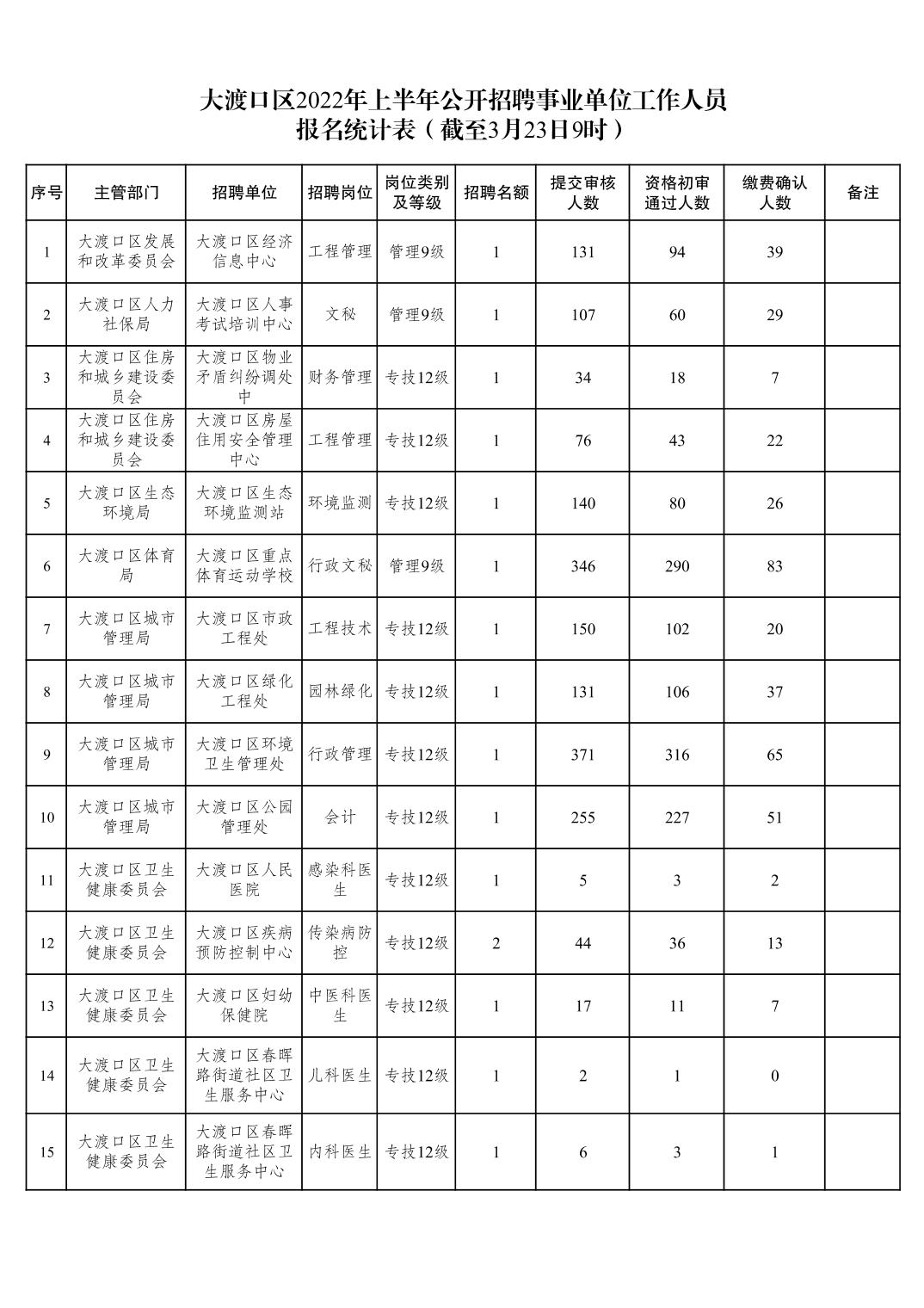 原標題:大渡口區2022年上半年公開招聘事業單位工作人員報名統計表(截至3月23日9時)