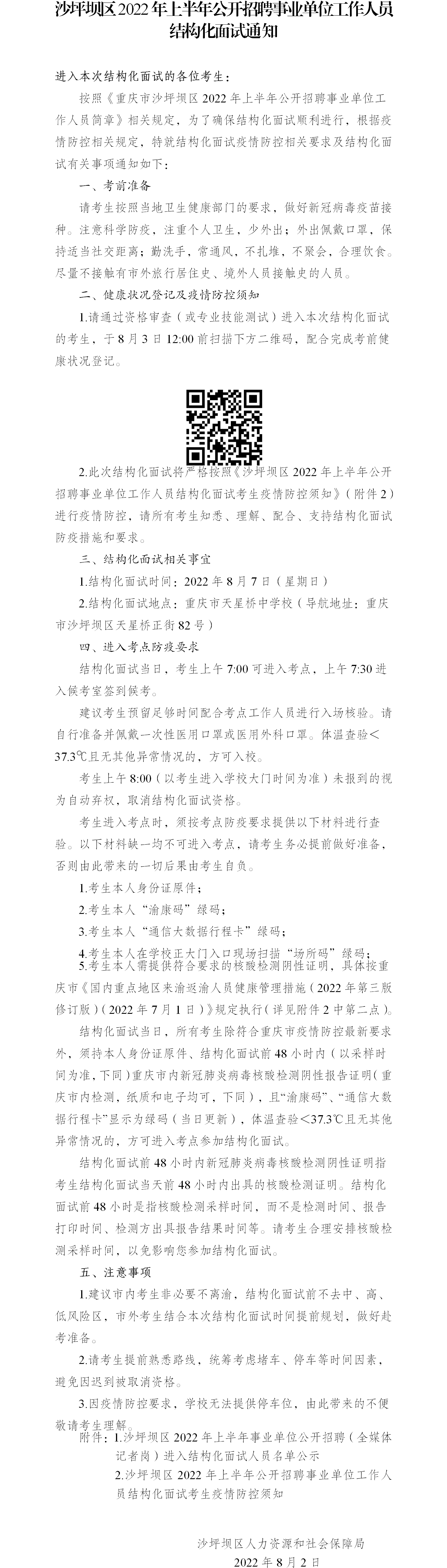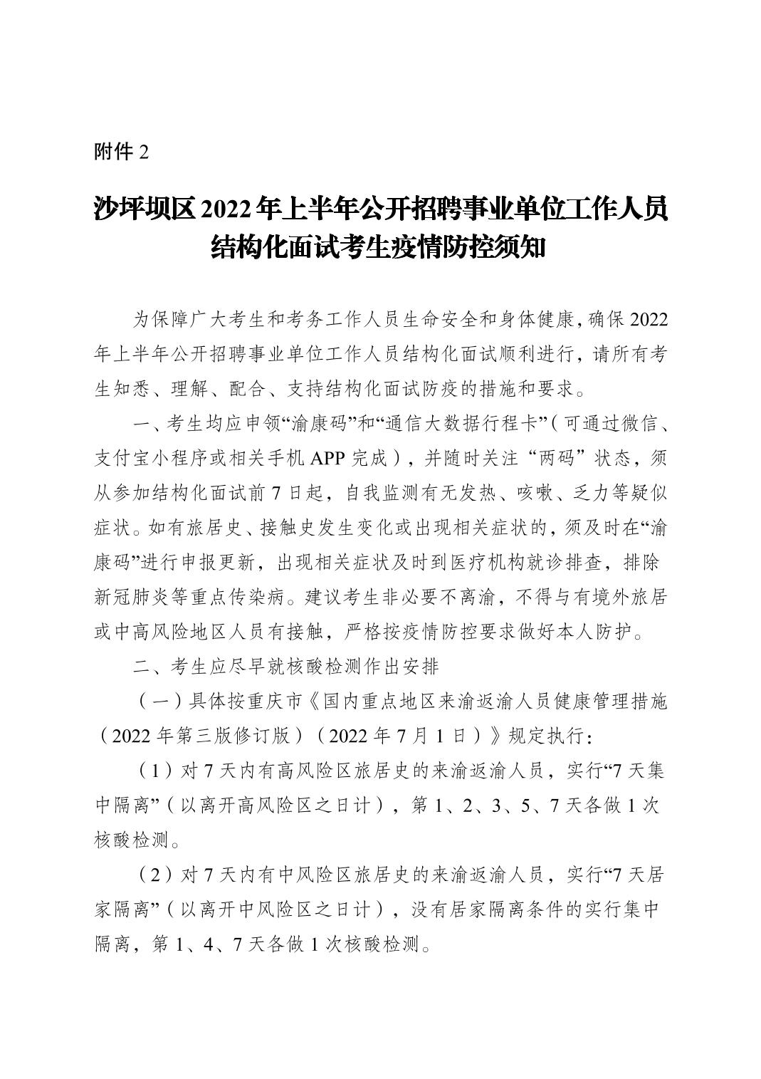 原標題:沙坪壩區2022年上半年公開招聘事業單位工作人員結構化面試通知