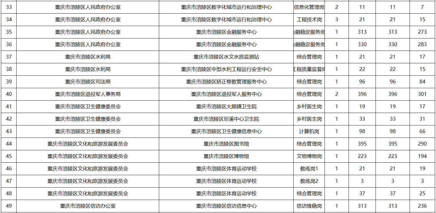 原標(biāo)題:重慶市涪陵區(qū)事業(yè)單位2024年第四季度公開招聘工作人員報名統(tǒng)計