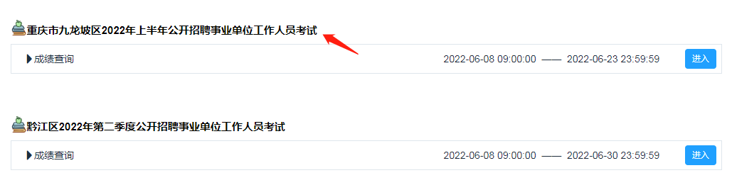 2022年上半年重慶市九龍坡事業單位公開招聘考試成績查詢入口 點擊進入↓↓↓