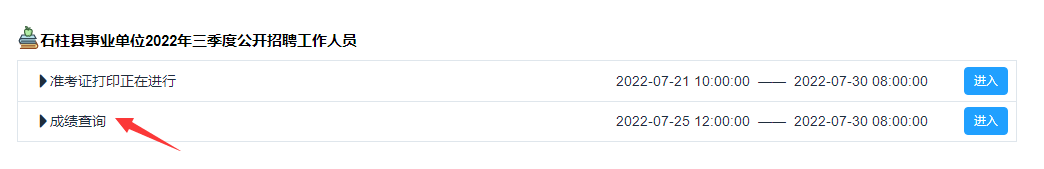 2022年三季度重慶市石柱縣事業單位公開招聘考試成績查詢入口 點擊進入↓↓↓