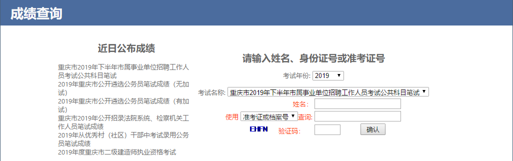 2019下半年重慶市屬事業單位筆試成績官方查詢入口已開通,考生可點擊下圖查詢。