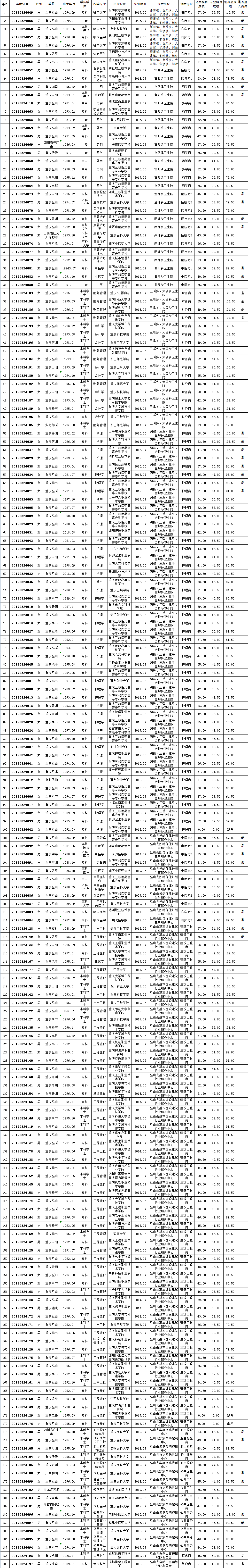 巫山縣2019年第三季度公招事業單位工作人員筆試成績公示