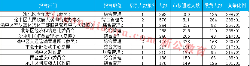 2019重慶公務員報名人數統計:競爭激烈前十崗位,最高比298:1(截止3月27日14時)