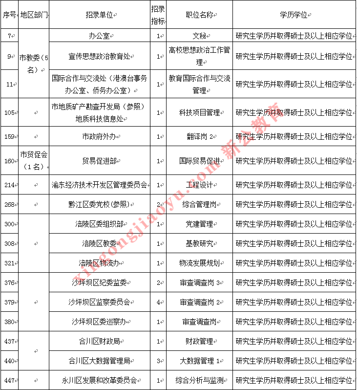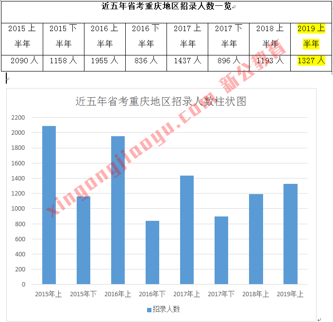 1、相比2018年省考重慶地區招錄人數增加了134人。