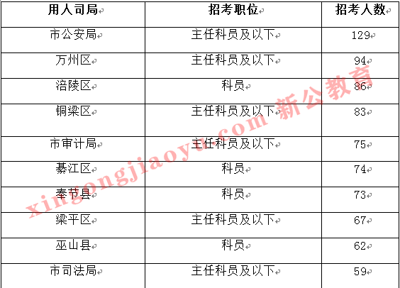 3、招錄人數排名前10的部門與職位為重慶市公安局最多