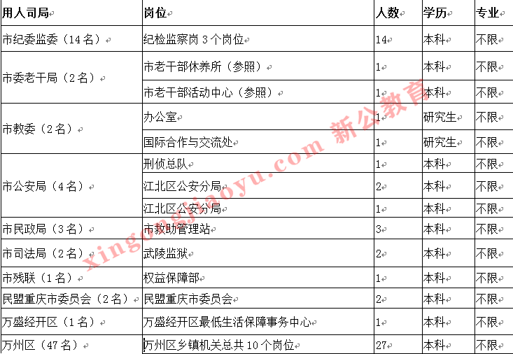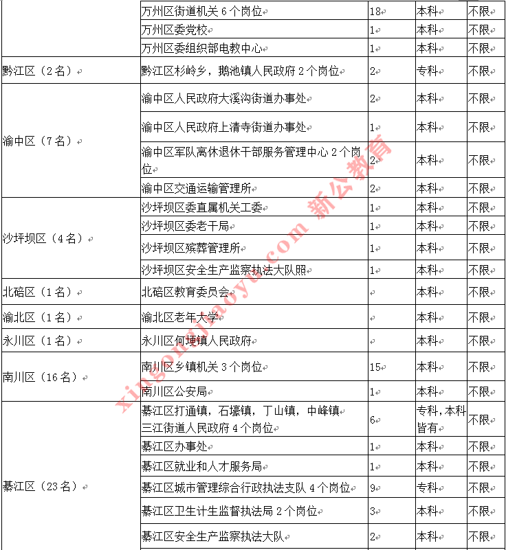 重慶市2019年度公開考試錄用公務員職位分析