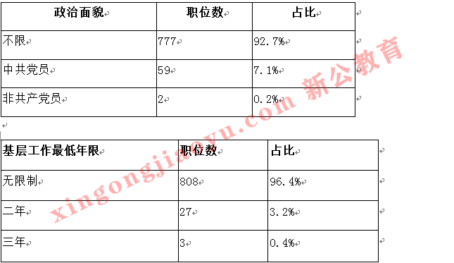 6、九成以上職位不限政治面貌,九成以上基層工作最低年限無限制