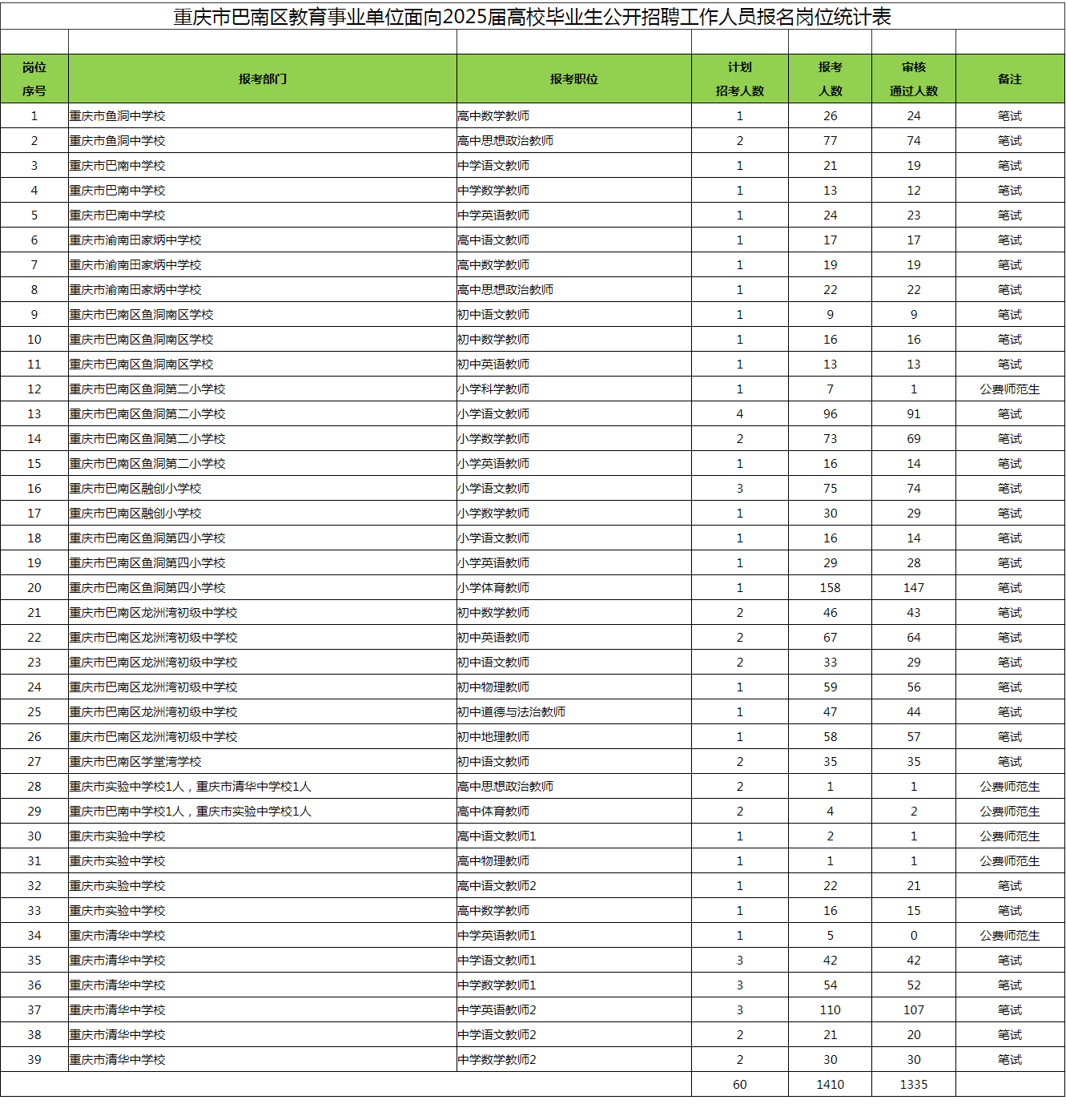 2025年巴南區(qū)教育事業(yè)單位應屆生招聘報名統(tǒng)計1410人