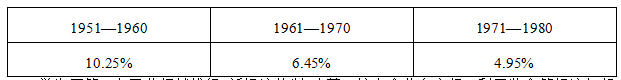 教師在多媒體上出示1951—1980年蘇聯(lián)國(guó)民年均收入年均增長(zhǎng)率圖表,并請(qǐng)學(xué)生結(jié)合教材思考勃列日涅夫進(jìn)行了哪些改革?結(jié)果如何?
