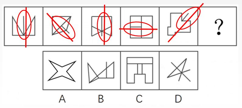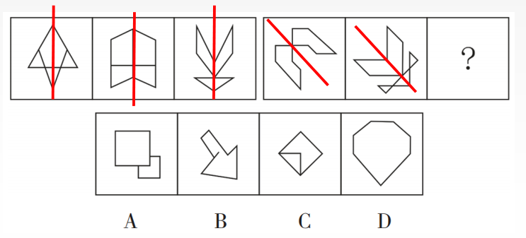 以上四種考法,是對稱性最常見、也是最重要的四種考法。如何能夠更快速的識別和解答對稱性題目呢?以上四種考法關鍵點在于對稱軸,所以一旦發現題干都是軸對稱圖形,需要畫出圖形所有的對稱軸,即可快速判斷是哪一種考法。下面,我們用兩道例題來具體演習這種解題方法。