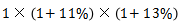 ”即是倍數,所以2018年是2017年的1.13倍,2017 年是2016年的1.11倍,隔年增長率為1.13×1.11-1。